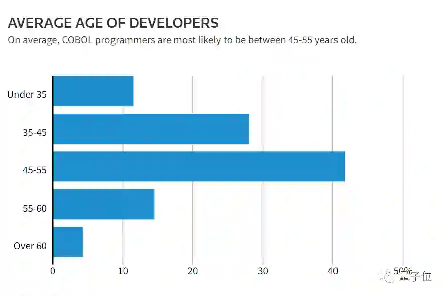 据路透社统计,当前COBOL程序员平均年龄在45-55岁之间。