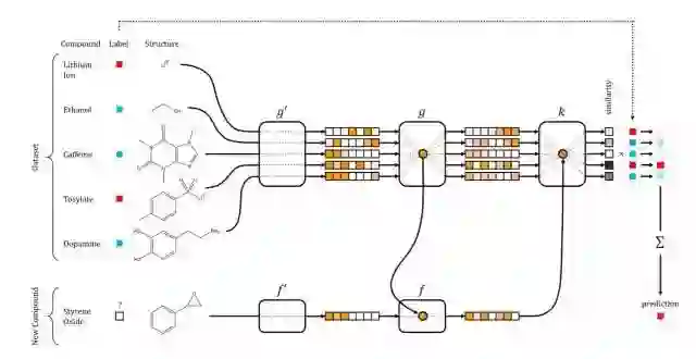 用于药品开发的一次学习网络,引自 Altae-Tran 等人的论文,ACS Cent. Sci. 2017