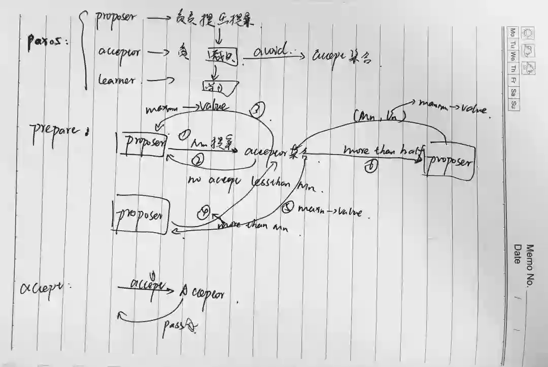 它主要分为两个阶段:分别是prepare阶段和accept阶段。首先是prepare阶段,先由proposer提出编号为Mn的提案,向accpetor集合发送prepare请求。Accept做出反馈:保证不会再接受编号比Mn小的提案;如果acceptor已经批准过某提案,会向proposer返回已经批准的编号最大的提案的value值。