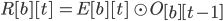 R[b][t] 表示第 b 个序列中第 t 个时间步行为物品 ( positive item ) 的向量与 t 时刻之前位置的输出向量的相关度 ( 取 t-1 时刻来代表t时刻之前位置的信息 ),相当于是将 O 右移了一位,以保证我们用每个时刻之前的信息来预测在该时刻与行为物品的相关度,如图27中我们使用步骤1,2,3的输出状态去预测步骤2,3,4。在t时刻我们可以随机 sample negative items 然后采用 pairwise rank loss,增大 postivie item 的相关度并减小 negative item 的相关度。