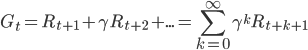 实际情况下我们希望最大化的是长期回报而不仅是即时奖励。因此t时刻的回报为从该时间起的一个总折扣奖励,即