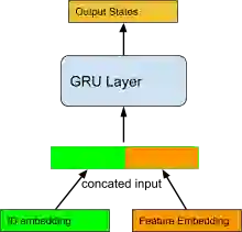 第一种也是最直接的方法是在输入端进行融合:将物品的 ID 向量和特征向量拼接为一个输入向量给到一个 GRU 单元: