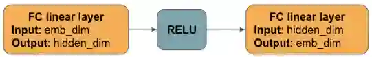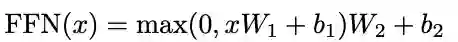每个 FFN 包括两个全连接层,第一个全连接层运用 ReLu 的激活函数,第二个全连接层是一个线性映射。