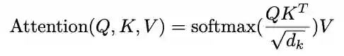 其中 Q, K, V 分别是输入 X 分别做线性映射得到的向量,对应 Attention 中的 query, key, value。除以 是因为在 Q,K 的维度比较大的时候,容易进入 softmax 饱和区,进行缩放可以保持梯度的稳定性。