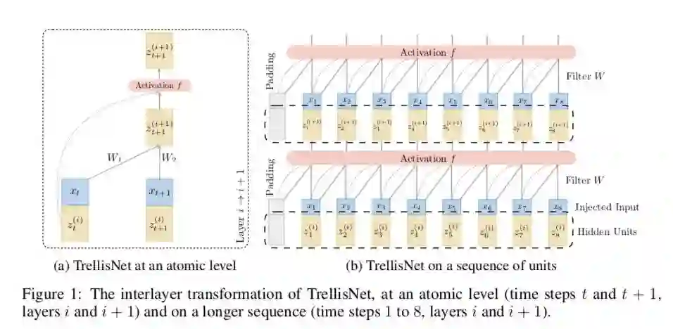 后来出现的 Trellis Network[11] 同 TCN 一样属于一种基于一维卷积的特殊时序网络,同样具有因果卷积 ( casual convolution ), 残差结构 ( residual connection ) 的特性,其相对 TCN 的不同点在于: