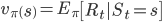 用值函数来刻画行为的回报。值函数分为两种,一种定义为从一个状态 s 开始的回报期望值: