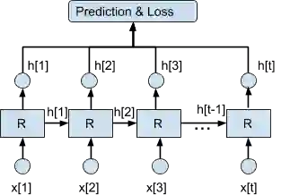 其中 h[t-1] 是上一时间步循环神经网络单元的输出状态,x[t] 是时间 t 用户行为的上下文信息,y 是时间 t 的 label 信息 ( 召回:第 t 个时间步用户发生行为物品的 ID;排序:第 t 个时间步用户对各个候选物品的行为的 label ),注意:我们在时间 t 进行预测时,不能将时间 t 的 label 信息 y 用到了模型训练中。