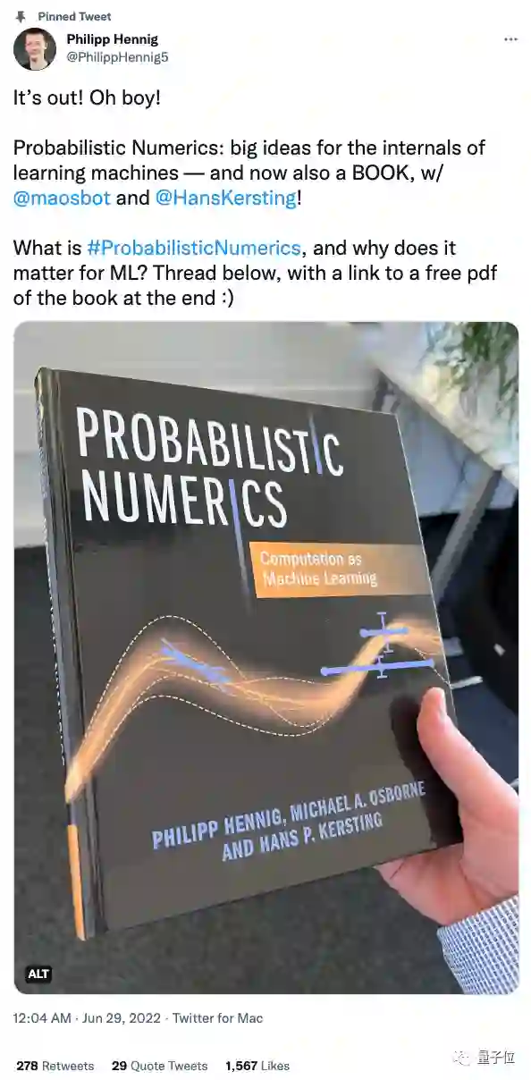 新书发布后,作者之一Philipp Hennig在推特上感叹:它终于出来了。