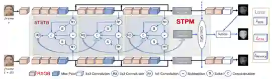 人脸防伪、活体检测是人脸识别应用中最重要的一环,人脸防伪的方法能够抵御不法分子通过照片、面具等手段对人脸识别系统进行攻击从而牟利,是一项非常有落地实用价值的研究领域。近些年关于人脸防伪的研究切入点很多,有的从针对新的攻击方式入手[9],有的从针对Cross domain入手[9],有的通过设计新的卷积核或者损失函数来更好的捕捉伪造人脸的信息[1],有的通过重构人脸的三维结构来分析是否为真实的人脸[4]。本文从人脸深度信息提取入手,前几年这方面的工作,对时空深度信息提取方法探索的比较粗糙,基本都是ResBlock接个LSTM,虽然会一些可视化的结果,但是依然很难知道学到了什么,为什么新能会好;本文致力于从空间Spatial与时间Temporal层面来揭秘人脸防伪。