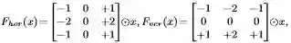 后面文章提交后才发现,跟 Kaiming 的这篇CVPR2019"Feature Denoising for Improving Adversarial Robustness" [8] 想法有点撞车了。不过出发点是相反的,文[8]中是为了尽量不受 Adversarial 扰动的影响,所以在 feature map level 进行 denosing 残差操作;而本文RSGB更关注局部细节信息,故在 feature map level 进行 sobel 残差操作。图4中,水平方向以及竖直方向的梯度可以由以下卷积操作导出: