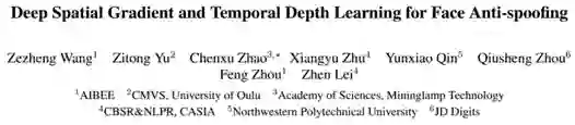 [2]Zezheng Wang et al., Deep Spatial Gradient and Temporal Depth Learning for FaceAnti-spoofing, CVPR2020 (Oral)