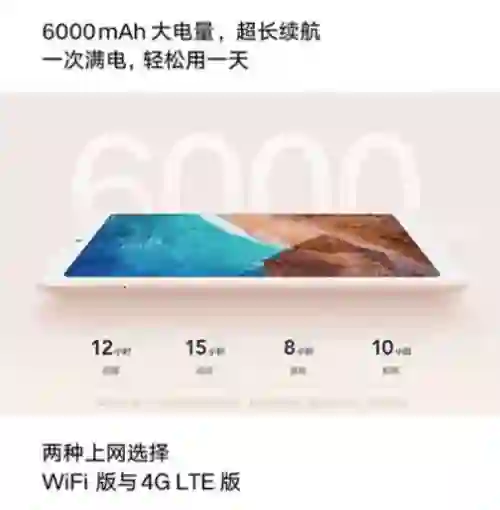 其他硬件方面,小米平板4使用骁龙660处理器,电池容量高达6000mAh,后置1400万像素摄像头,前置500万像素摄像头,支持面部识别功能,不过并没有加入指纹识别。屏幕尺寸为16:10的8英寸大小,整体来说比之前的版本尺寸更小,有点类似一个大手机。