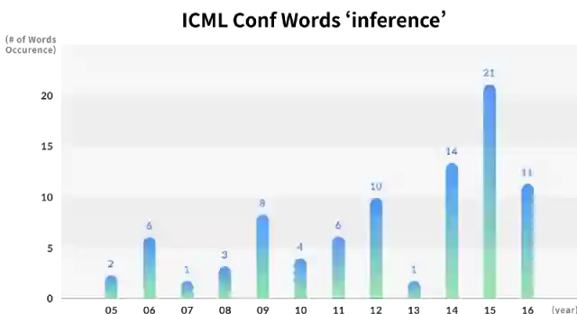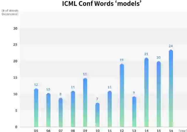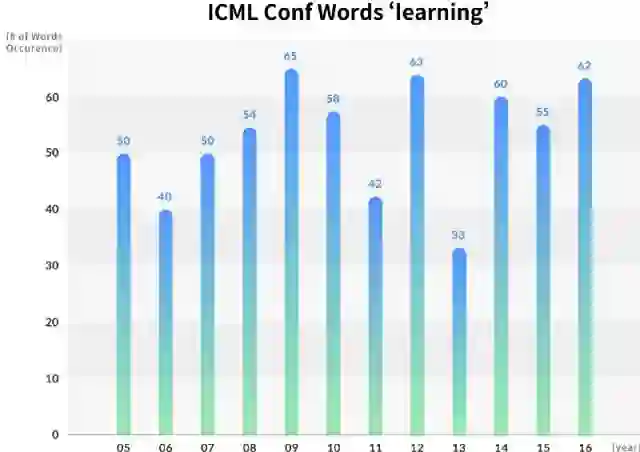 对于ICML收录的论文,2006年论文题目中最常使用的关键词是“贝叶斯”、“核”和“分类”。 但是,2016年收录的论文则频繁出现“网络”、“算法”、“优化”,“深度”等关键词。