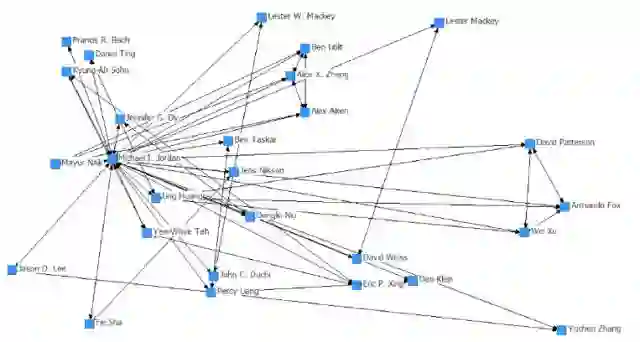 处于中心的Michael I. Jordan的AI研究人员网络如下所示。