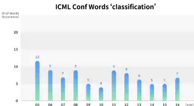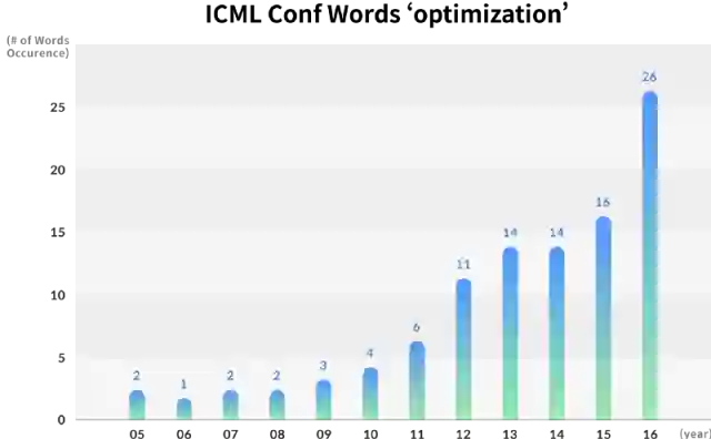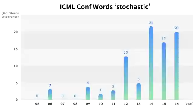 年度ICML论文中主要关键词出现次数的变化