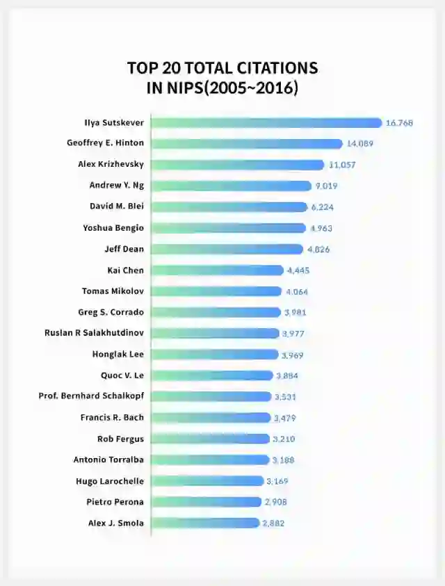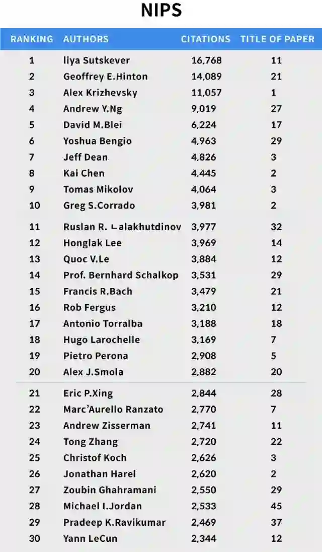 在过去的12年里,NIPS中被引用次数最高的前20名作者