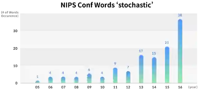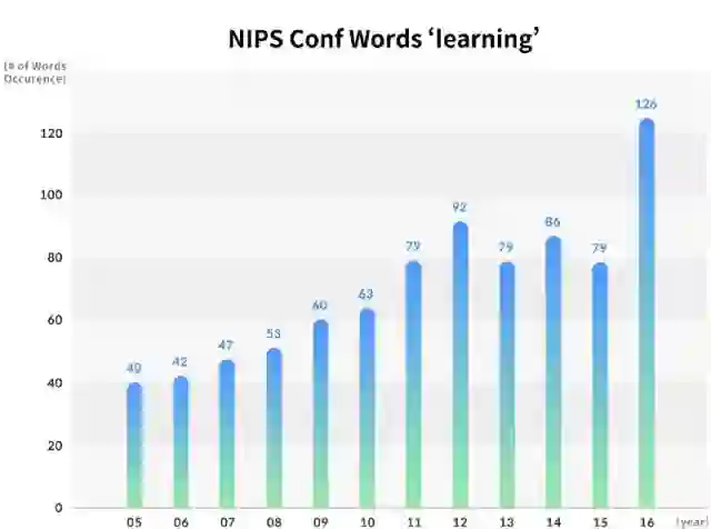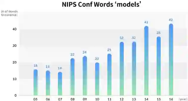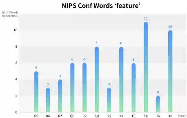 年度NIPS论文中主要关键词的出现次数的变化