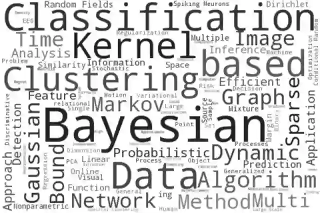 NIPS收录的论文标题中出现的关键字(越大的词意味着它们更常在标题中出现)。