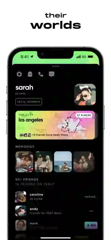 根据「Zenly」在应用商店上传的产品介绍图来看,在用户的个人资料页面展示用户足迹的your world版块下方还引入了一个叫做Memories的版块,似乎是一个类似于朋友圈的功能。