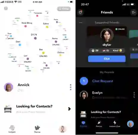 另外与上次报道时相比,「Itsme」的App界面还有一大变化是最左侧的底部一级标签Instant更新成了friends,提供的功能也从之前那个用来寻找新用户的“星球”变成了现在的“好友列表”和“好友推荐”,很显然「Itsme」也希望靠着parties和视频聊天的功能让用户将更多的关系沉淀下来。