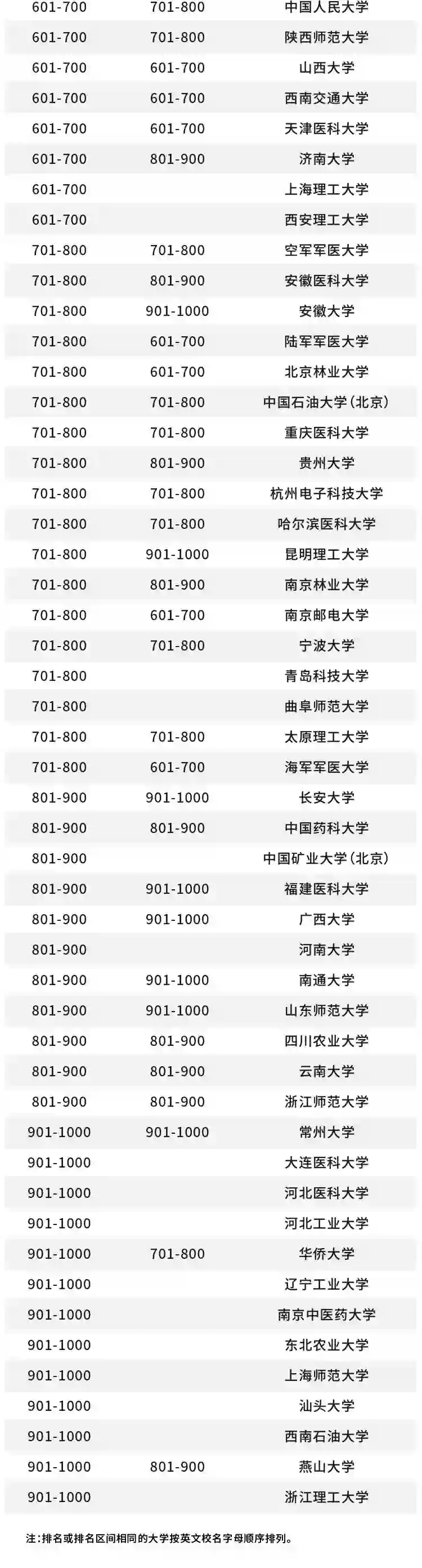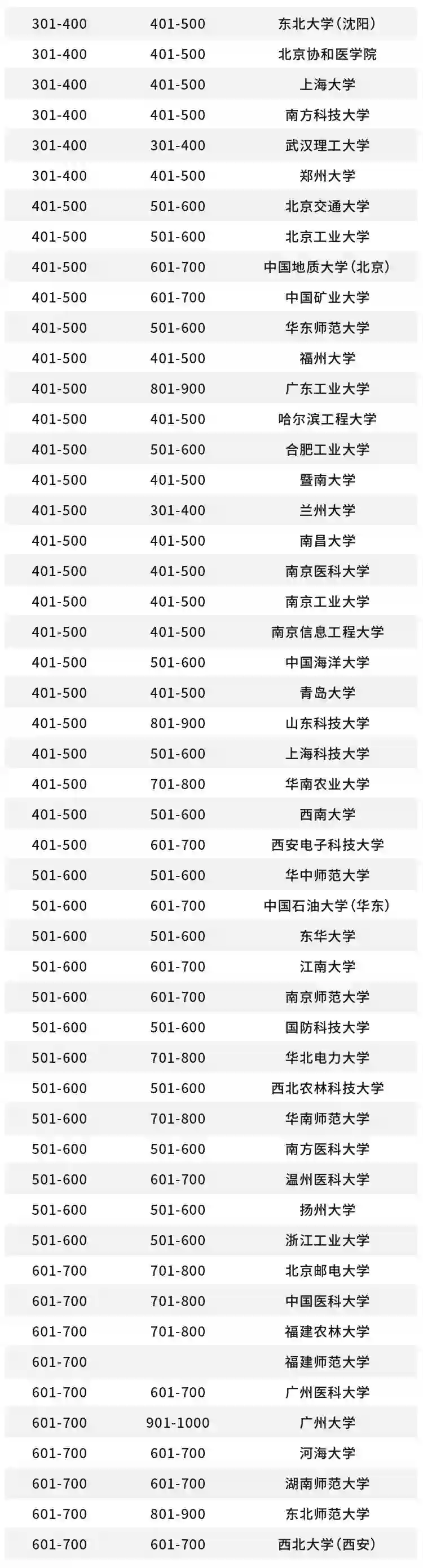 北京理工大学、湖南大学、西北工业大学、北京科技大学首次进入全球前 300。