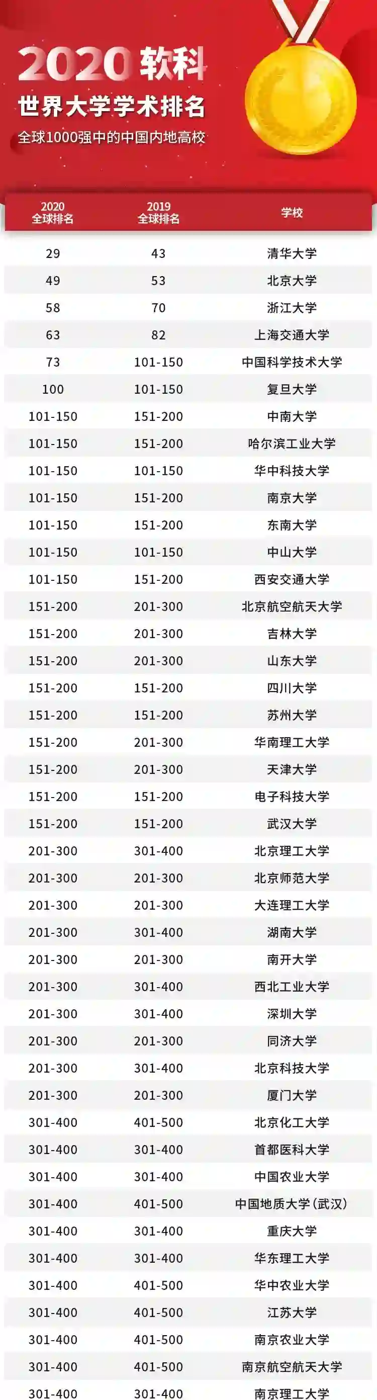北京航空航天大学、吉林大学、山东大学、华南理工大学、天津大学首次进入全球前200。