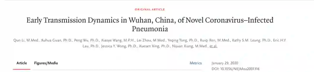 2020 年 1 月 29 日,《新英格兰医学杂志》发表一篇题为 Early Transmission Dynamics in Wuhan, China, of Novel Coronavirus–Infected Pneumonia的论文,披露了迄今为止最为详细的新冠病毒早期流行病学数据(“NEJM医学前沿”对论文做了中文全文翻译:翘首以盼的流行病学数据来了|新冠肺炎),其中最为关键的结论之一为新型肺炎“人传人” 在 2019 年 12 月早已出现,同时披露了有医务人员在 1 月初已经感染。