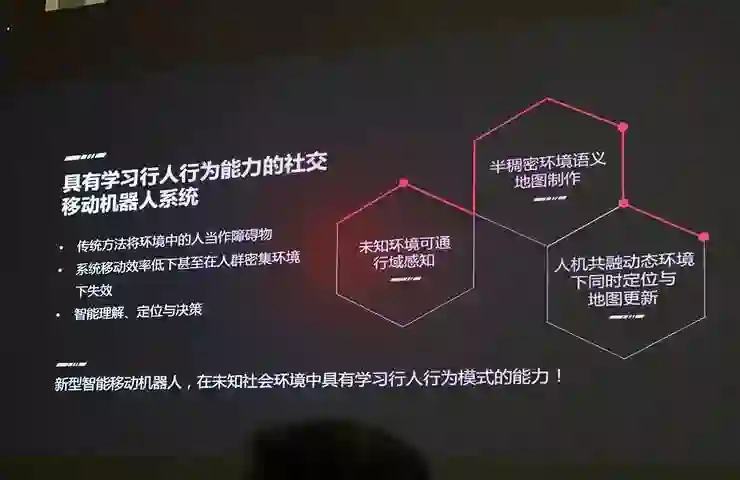 不过,他也表示,虽然目前人工智能肯定无法覆盖现实世界的所有场景,但是在限定了场景后,即场景智能是能够做得很好的。基于这个观点,孟庆虎教授也一一呈现了其在场景智能,尤其稠密人群动态环境中的人机交互方面的工作以及相关的经验。