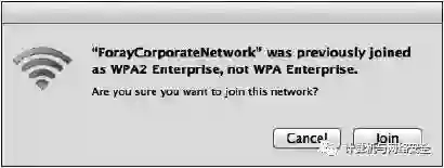 首先,让我们看看在“Wi-Fi保护访问”提供了不正确的版本的情况下,Mac的OS X上会发生什么。类似于Windows,用户收到警告提示(见图6)。