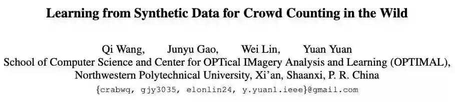 最近新上传到arXiv 的 CVPR 2019 的接收论文《Learning from Synthetic Data for Crowd Counting in the Wild》,来自西北工业大学的学者提出使用计算机图形工具创建拥挤人群数据集的方法,并开源了他们创建的大型数据集,在此数据集上训练的算法精度获得了大幅提升,超越了之前的state-of-the-art。