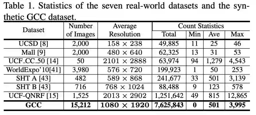 下图是与现有数据集的比较,可见该论文中提出的GCC数据集是目前最大的公开数据集。