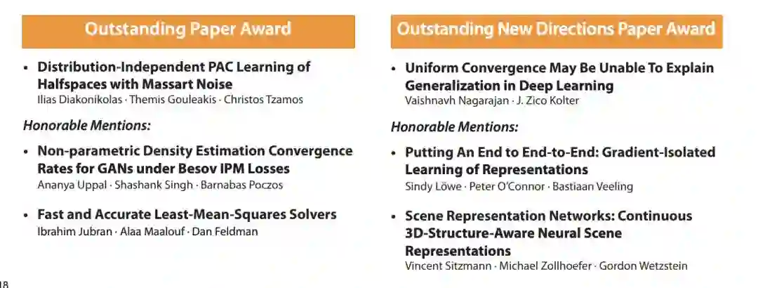 目前 NeurIPS 正在进行的活动还仅仅是展览和部分 Tutorial,虽然大会主要议程将在当地时间 12 月 10 日才会开始,但就在几个小时前,NeurIPS 官方公布了最引人关注的杰出论文等奖项的评选结果。