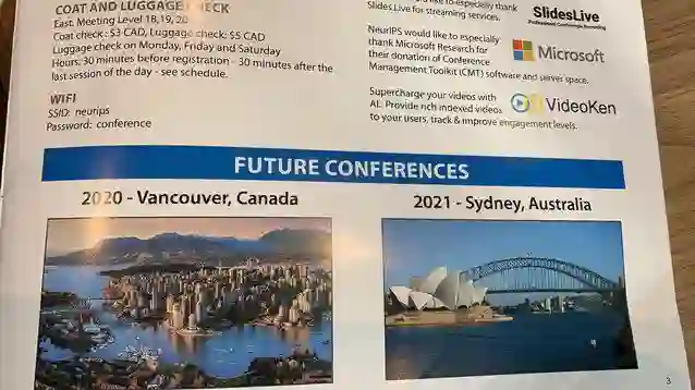 最后,NeurIPS 还公布了后年大会的举办地点:在明年继续在温哥华举办一届之后,NeurIPS 2021 将移师澳大利亚城市悉尼。
