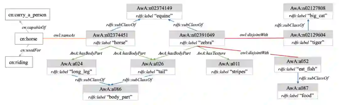 本开放资源由浙江大学知识引擎实验室以及牛津大学的陈矫彦研究员和爱丁堡大学的Jeff Z. Pan教授联合贡献。在此开放资源中,我们为零样本学习相关技术贡献了类别语义知识图谱,图谱囊括了类别的属性信息和文本信息、结构化知识信息,以及语义更丰富的逻辑约束信息等,包含了比以往工作更丰富的类别语义知识,为推动知识驱动的零样本学习研究提供数据支撑。