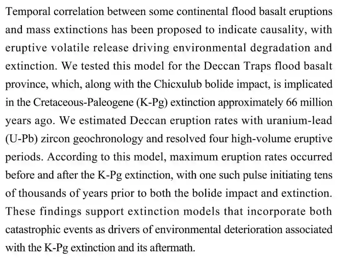 U-Pb显示德干暗色岩的脉冲式喷发期跨越了白垩纪末大灭绝