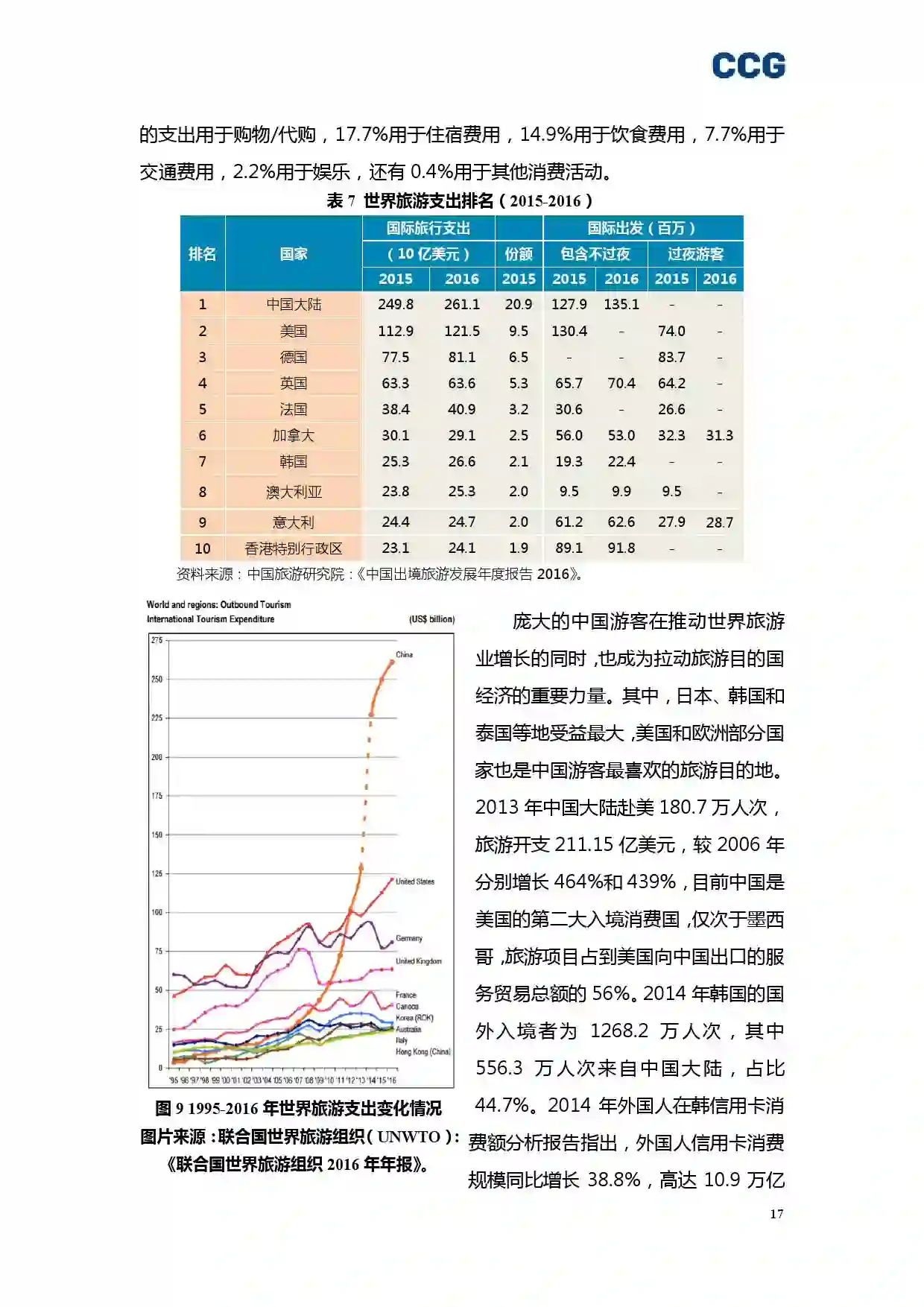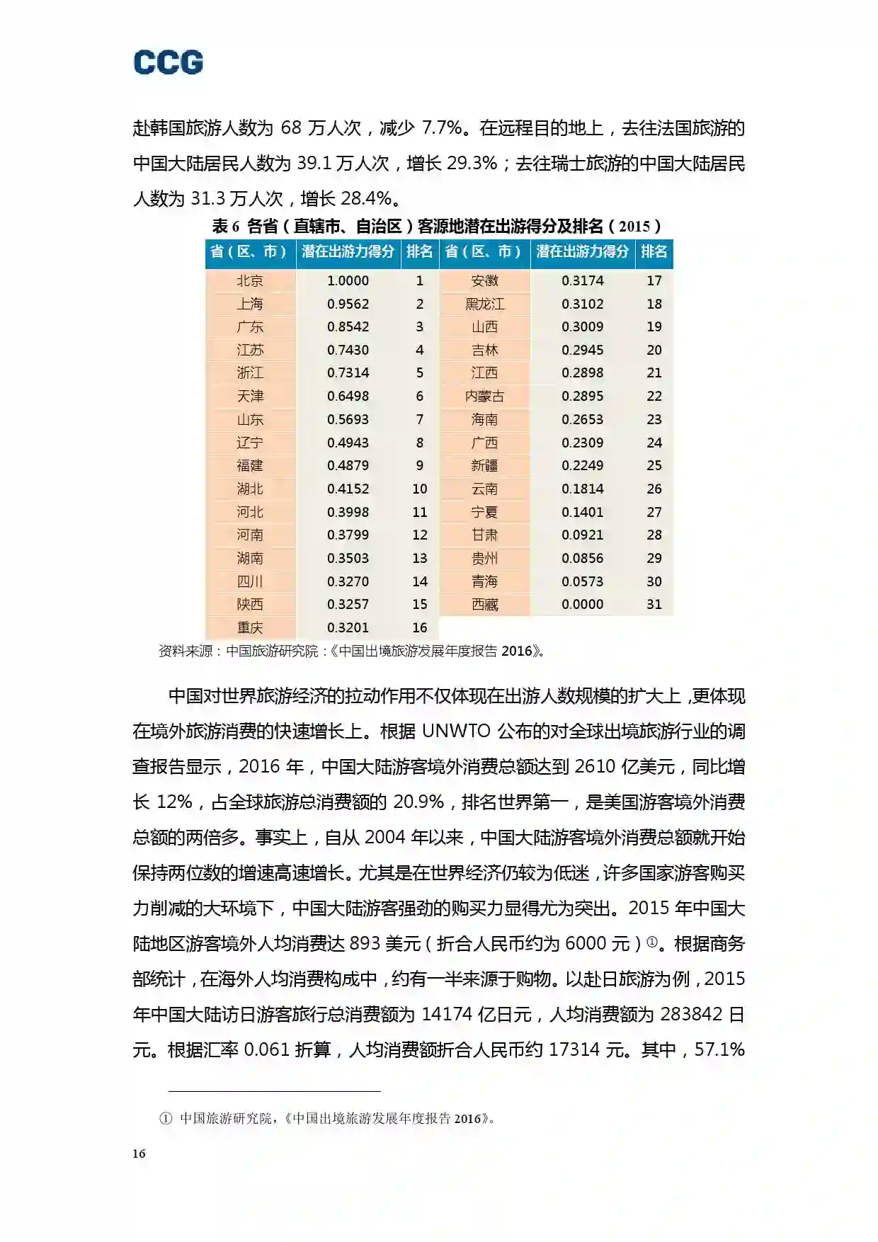 中国对世界旅游经济的拉动作用不仅体现在出游人数规模的扩大上,更体现在境外旅游消费的快速增长上。2016年,中国大陆游客境外消费总额达到2610亿美元,同比增长12%,占全球旅游总消费额的20.9%,排名世界第一,是美国游客境外消费总额的两倍多。