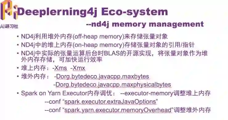 需要注意的是,用 ND4j 做神经网络的训练时,堆外内存一定要调的非常大,因为大量的工作都是在堆外内存做相应的张量运算。堆外内存要远远大于堆上内存。