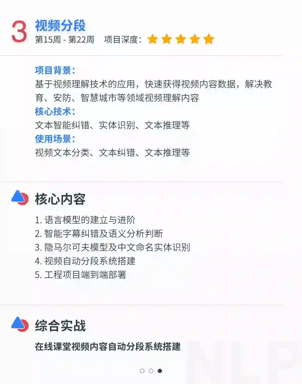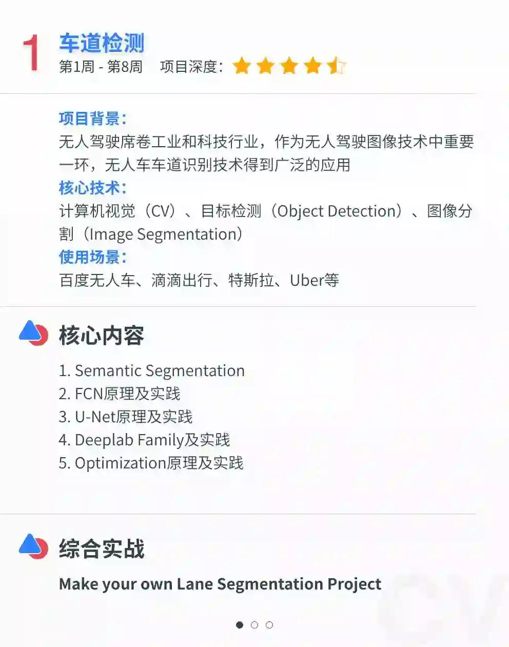 百度精选NLP/CV/计算广告3大方向9大AI前沿工程项目,并提供企业真实应用的脱敏数据集供学员实战使用,旨在培养具有核心竞争力的AI工程师。