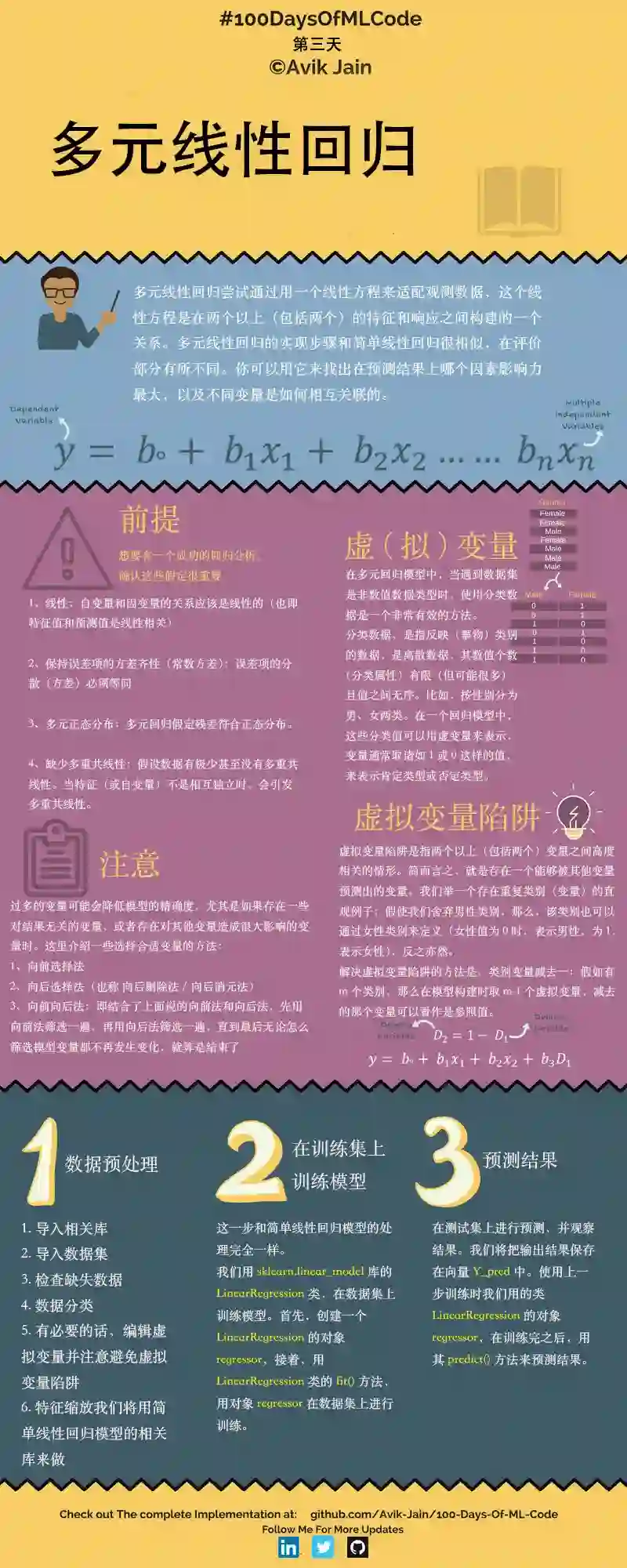了常见的机器学习算法以及帮助初学者在100天内逐步探索机器学习的实践细节。