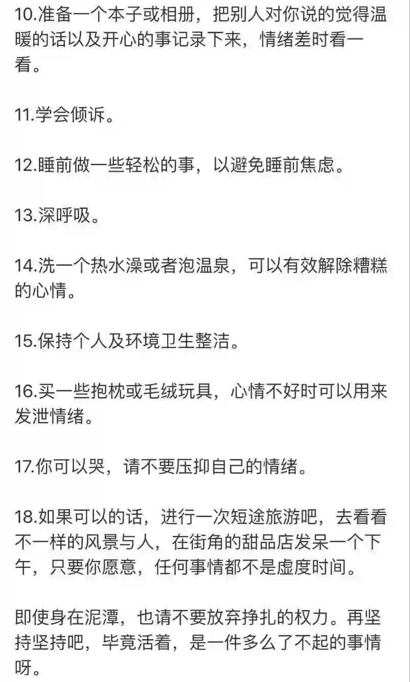 下面来分享一些可以缓解抑郁情绪的小方法: