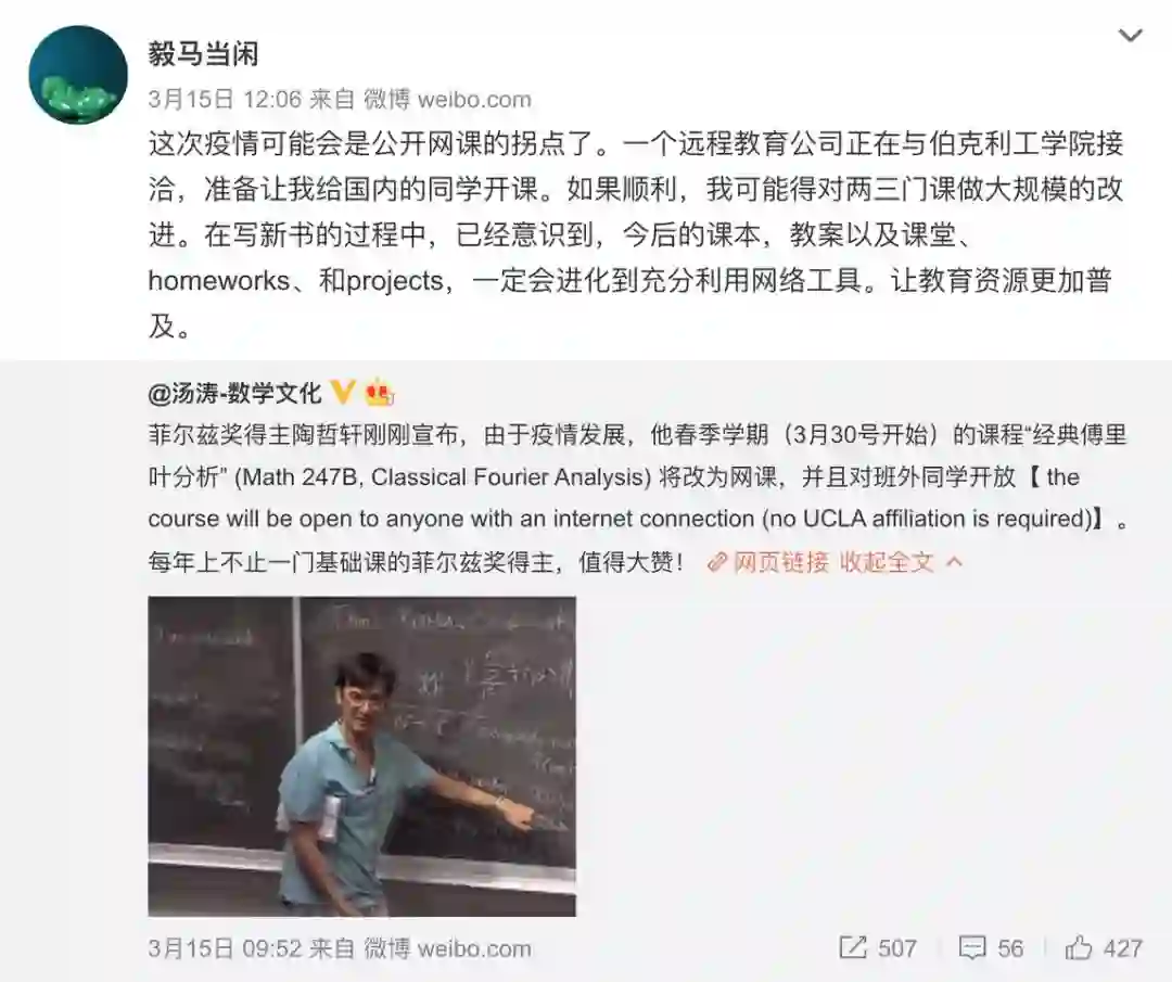 陶哲轩教授表示,后续课程的各项笔记、课程描述更新、课程讨论都会放到网站上。