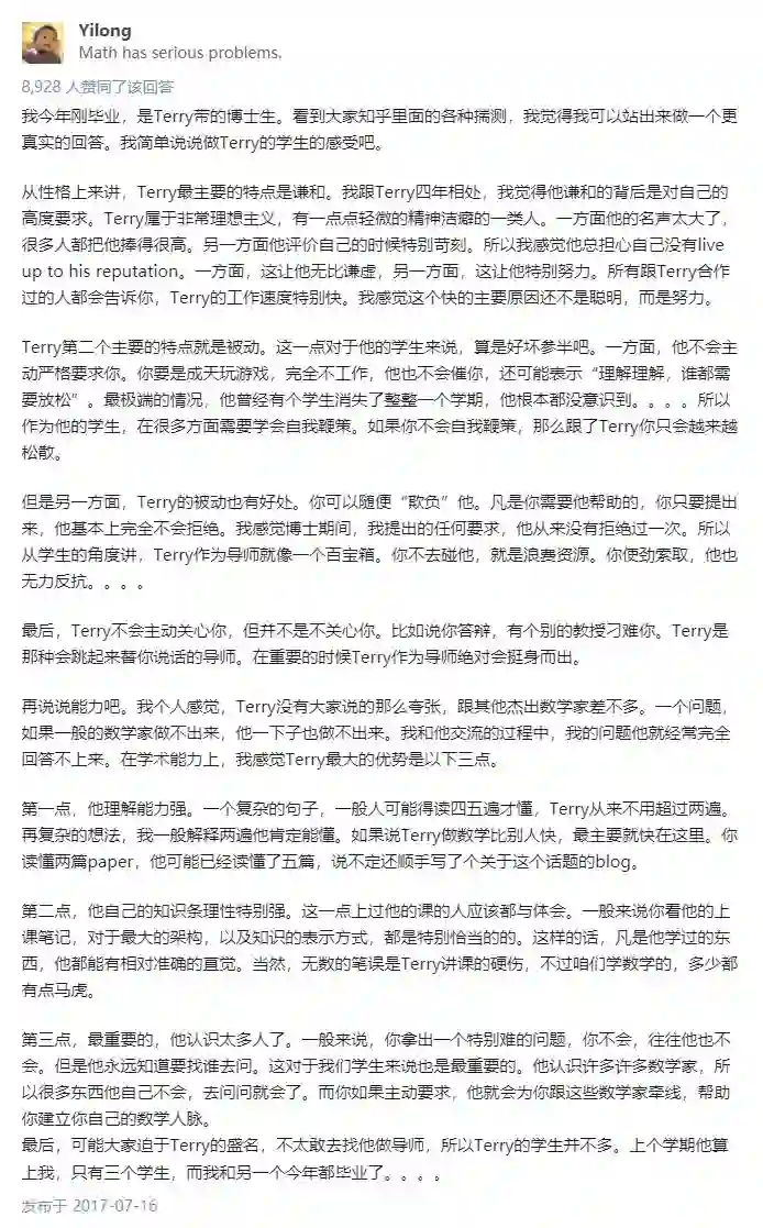各类平台都有对 Terry 的过人之处早有各种褒奖,在此不再赘述。既然要上 Terry 的课,那么你的注意力势必要从「他的能力有多强?」转移到「怎样才能做好他的学生?」。暂时选择性忘记那些漫天飞舞的夸奖,好好跟着大神上课才是正事。当然,网络上不乏已有他的学生在传授一些经验,为「学弟学妹们」开山辟路: