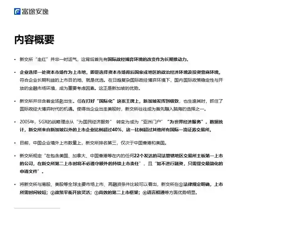 基于以上背景,富途安逸学苑推出《境外上市微报告之重新发现新加坡交易所》,以解答中国企业对新交所的诸多关切。