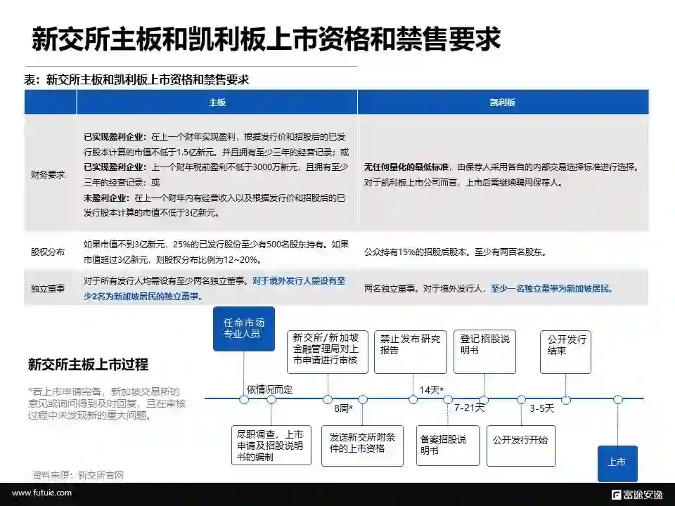 在新交所主板和凯利板(Catalist,创业板)上市的财务等方面要求并不相同。