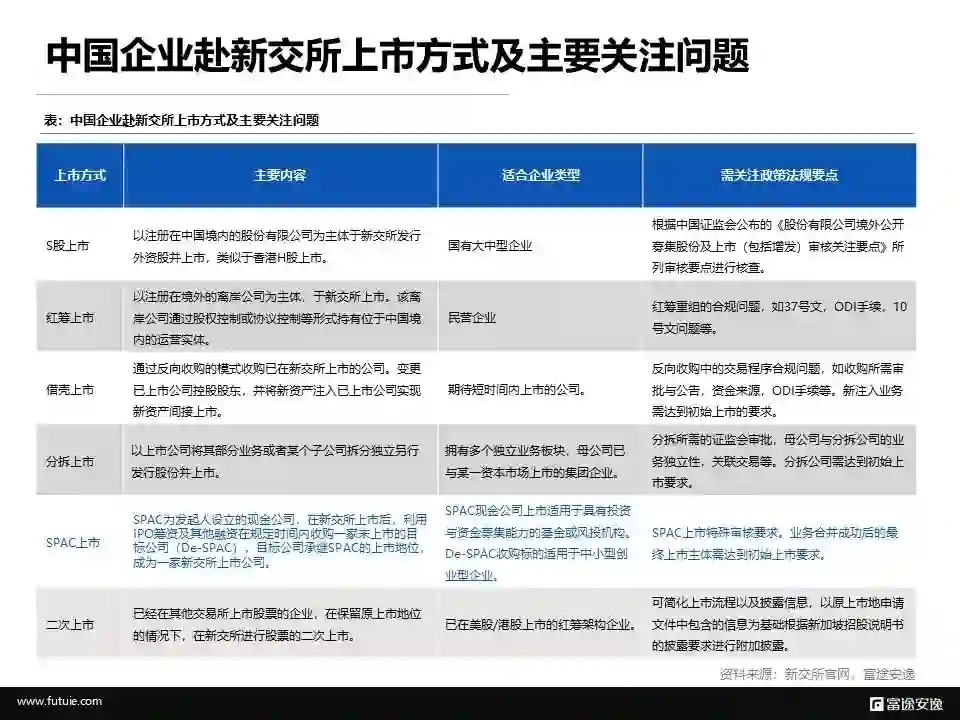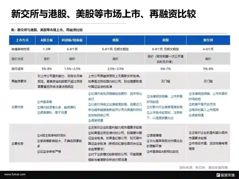 对于中国企业,将新交所与港股、美股等全球主要市场上市、再融资条件比较可以看出,新交所在①法律规定明确,上市所需时间较短;②政策平衡开放灵活;③高效的第二上市框架;④语言相通等方面优势明显。