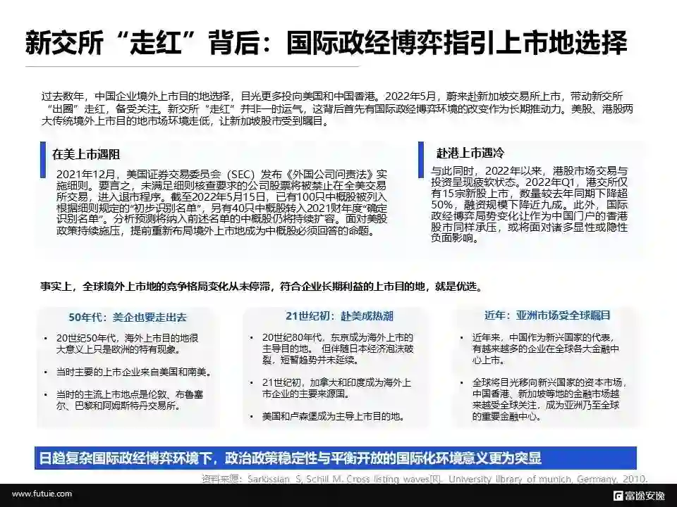 近两年来,因美股政策多变持续向他国企业施压,积极关注、寻找美股乃至港股以外的适宜国际资本市场作为募资渠道,成为诸多中国企业的迫切需求。