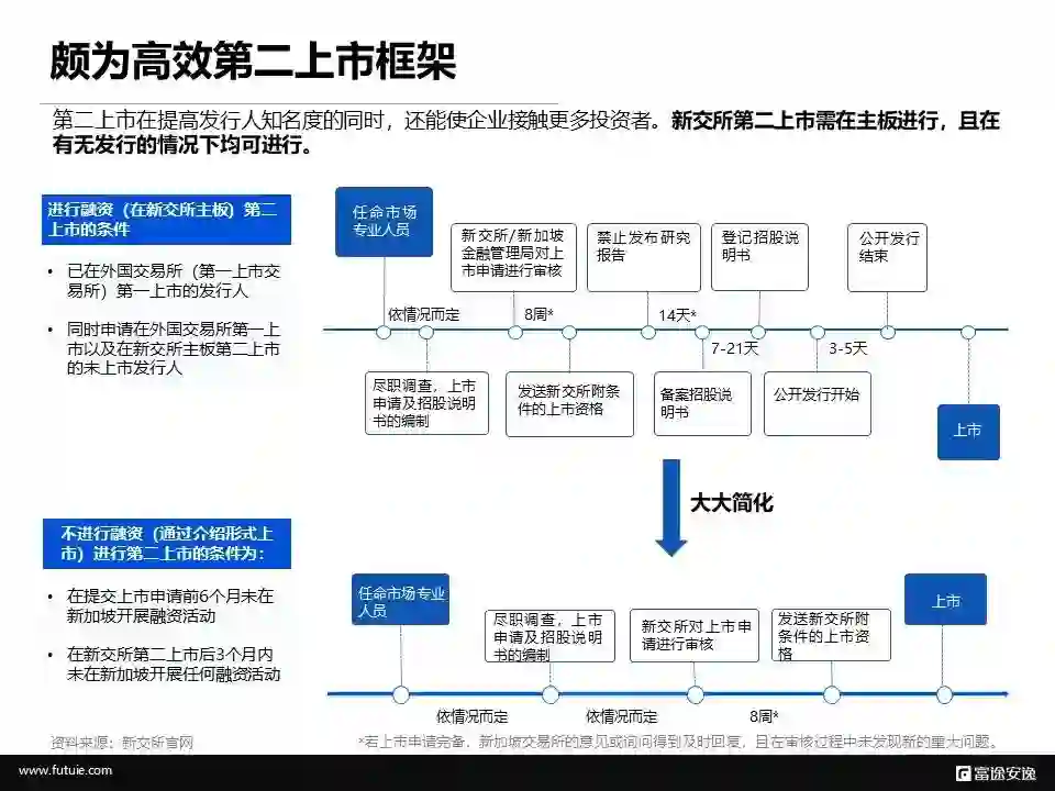 同时,在新交所二次上市可以选择融资或不融资的方式,这将使上市流程进一步简化。