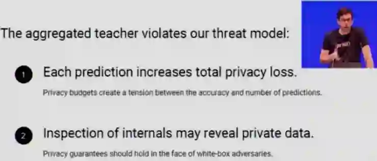 如果你仔细看一下,就会发现「聚合教师模型」实际上破坏了我们的威胁模型。每次你在查询「聚合教师模型」时,都会增加隐私成本,因它每次给出的输出结果都会或多或少透露一些隐私信息。然而,当「学生模型」训练好之后,只能对「聚合教师模型」进行固定数量的查询,那么隐私成本就会被固定下来了。