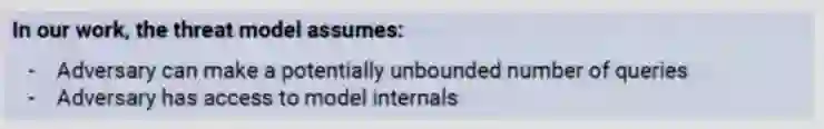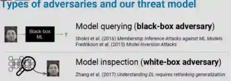当我们进行防守设计的时候,我们会针对最强的攻击手法。有很多证据表明,机器学习模型能够记住一些训练数据,其中一个证据就是来自这篇论文:《理解深度学习,需要重新思考泛化问题》(Understanding Deep Learning Requires Rethinking Generalization)。所以我们也想防范白盒攻击者(white-box adversary)通过模型检验进行的攻击。
