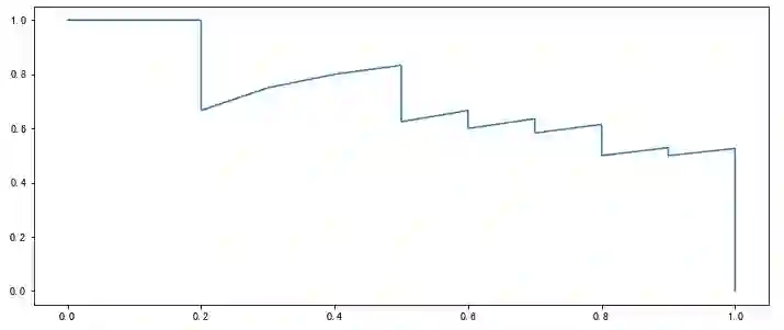得到 P 和 R 后就可以画出更加直观的P-R 图(P-R 曲线),横坐标为召回率,纵坐标是精准率。绘制方法如下: